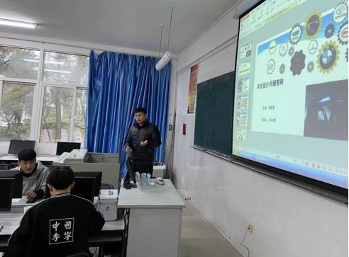 在开题答辩之前,机械设计制造及其自动化、汽车服务工程、机械电子工程三位教研室主任进行了精心组织和安排。首先是向专业老师征集题目,题目数超过毕业生数20%以上,并由学院组织教学科研骨干教师对题目进行审核;其次题目审核通过之后各教研室向学生发放题目,学生选题确定人选后由指导老师发放任务书,学生撰写开题报告;最后指导老师在任务书和开题报告上签字后,学生方可参加本次开题答辩。