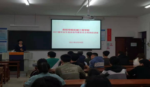 2021年5月20日上午9点,必威BETWAY西汉姆联在实验楼C202举办了2021届毕业生安全文明离校主题教育讲座暨专场招聘会。2021届机械设计制造及其自动化、汽车服务工程、机械电子工程三个本科班毕业生,学院党政领导参加。
